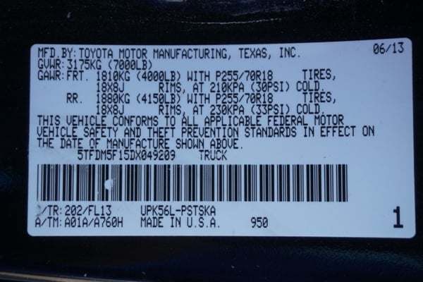 VIN: 5TFHW5F19DX314855